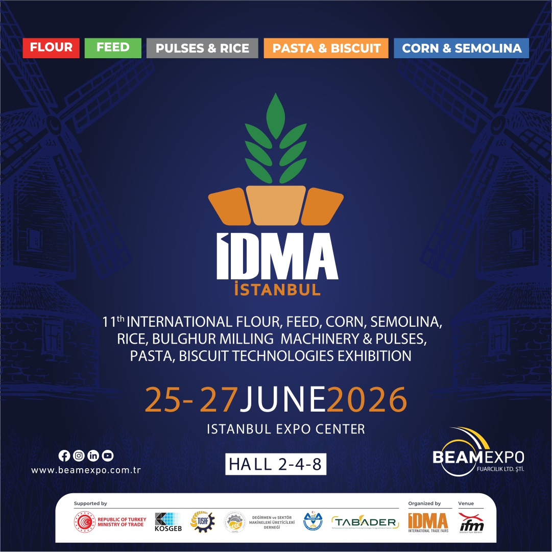 Recognized as the first and only international technology exhibition in its sector, IDMA presents the latest innovations, advanced machinery, and complete production solutions for the grain, flour, feed, rice, bulghur, pasta, biscuit, corn, and semolina industries.