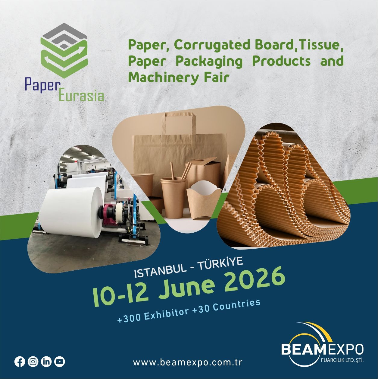 PAPER EURASIA 2026 will take place at Istanbul Expo Center between 10–12 June 2026, bringing together the paper, corrugated cardboard, tissue paper, printing, paper packaging products, machinery and equipment industries under one roof.