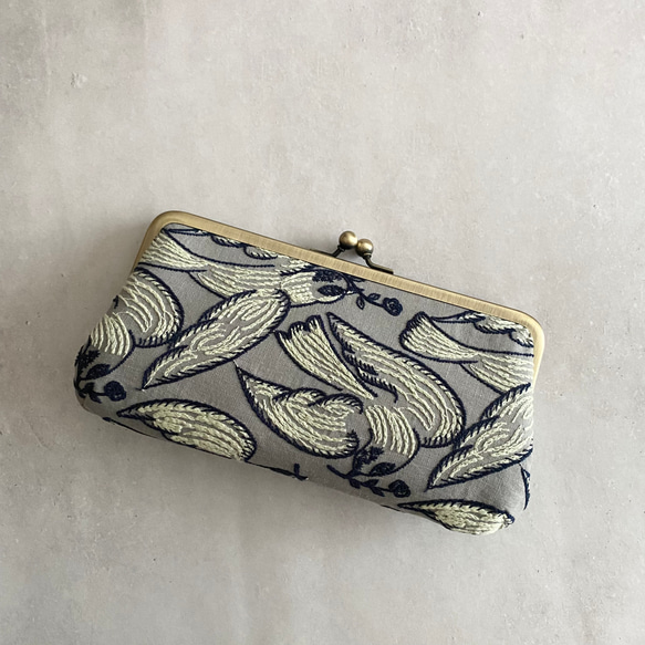えっこ様ミナペルホネン /carnival”カーニバル/がま口長財布薄型 親子がま口長財布【ミナペルホネン:following day_ gray】※受注制作