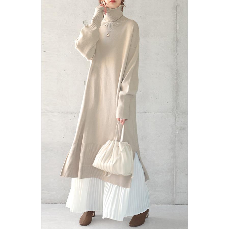 - レディース > ワンピース > ドゥロワー タートルネック Aライン ニット ワンピース パフスリーブ ロング丈 ドゥロワー タートルネック Aライン ニット ワンピース パフスリーブ